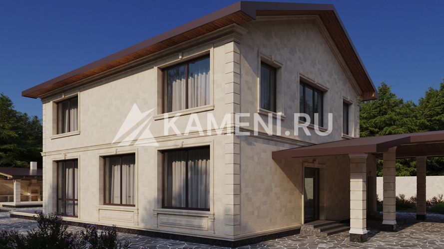 Отделка фасада из песчаника ПДБ и гранита Тан Браун